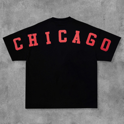 Fashion Chicago Print Short Sleeve T-Shirt